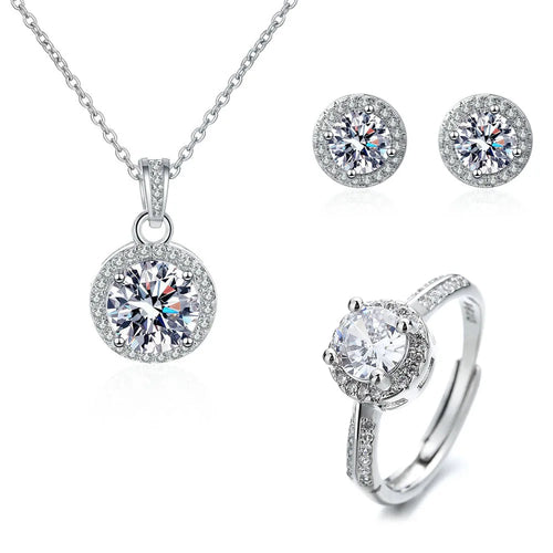925 Sterling Silver Set High Quality Necklace Earring Ring Chain Fashion Jewelry For Women Wedding Birthday Gift