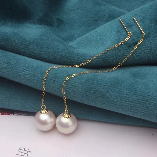 100% Real 18K Gold Natural Freshwater Pearl Drop Earrings Pure AU750 Simple Tassel Earrings for Women Fine Jewelry